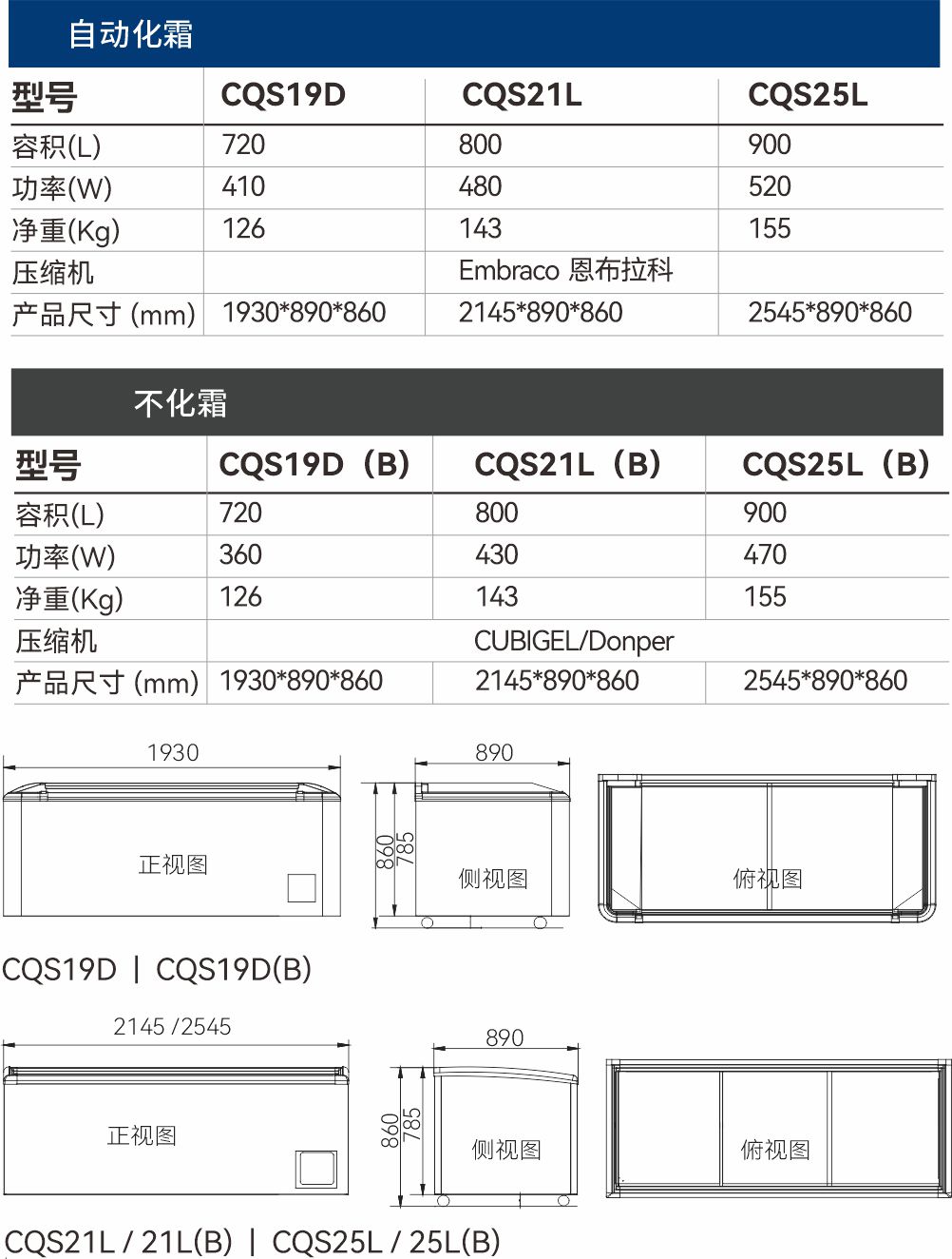 9.自动化霜,铜管蒸发器 恩布拉科压缩机,左右上下推拉(可选)