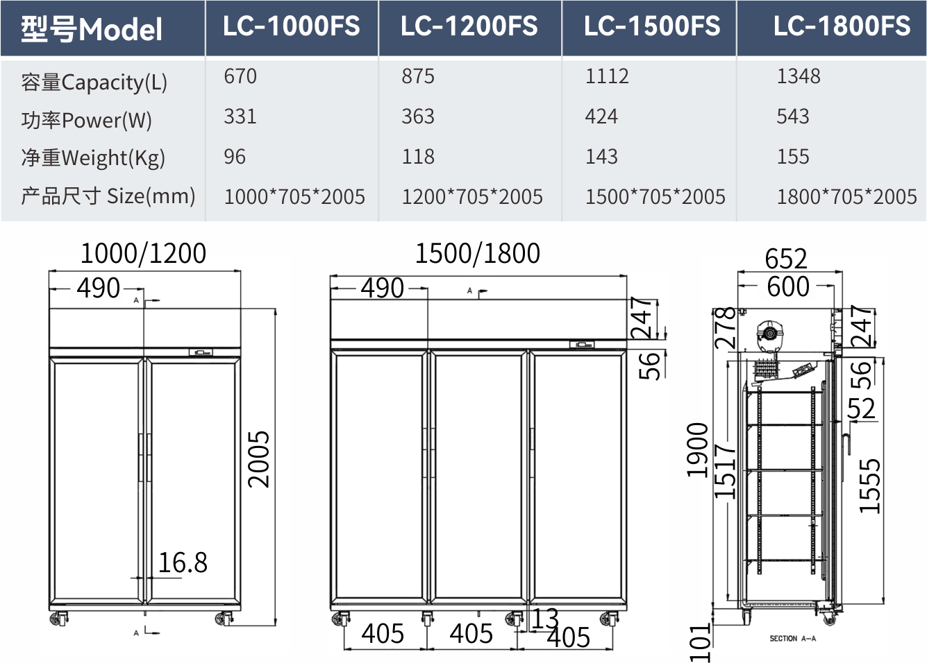 经济款风冷展示柜(上机组)